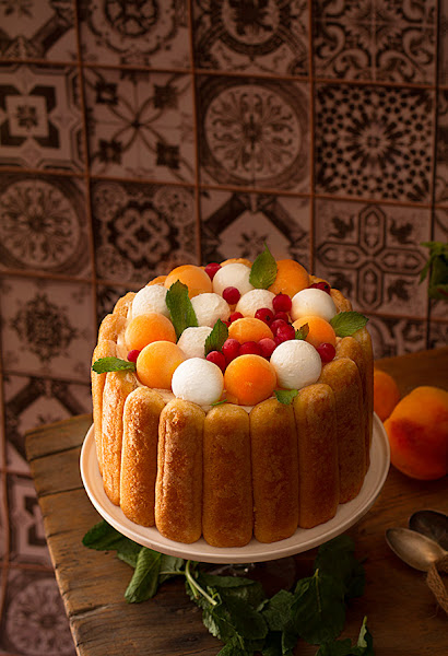 Para elaborar esta Carlota o Charlota de Frutas he elegido una combinación muy delicada de fruta veraniega: melocotón y melón aromatizado con menta o hierbabuena envuelta en una extraordinaria mousse de chocolate blanco caramelizado. El resultado es una tarta fresca, suave y cautivadora.