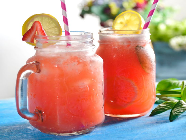 Exprime los limones y la lima y mezcla con el zumo de fresas.