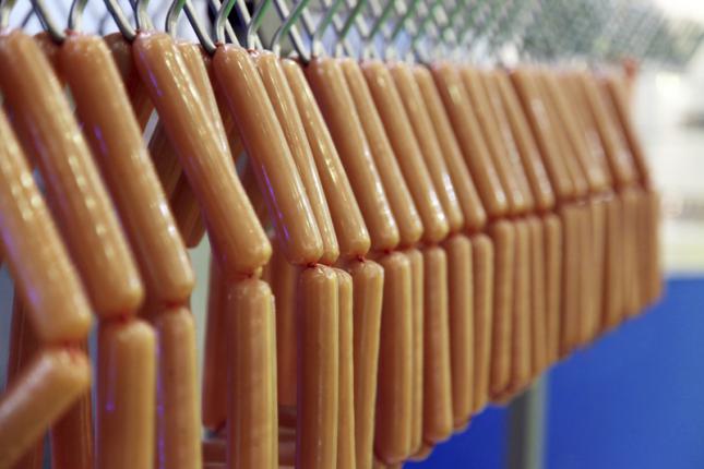 Se utilizan duchas de agua fría para enfriar las salchichas hasta conseguir una temperatura en el interior de la salchicha de 29 oC.