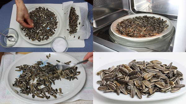 Querían tostar las pipas y me han traído unos pocos girasoles para probar de que manera quedan mejor, si en microondas o en la sartén. La verdad es que de ambas maneras quedan riquísimas.
