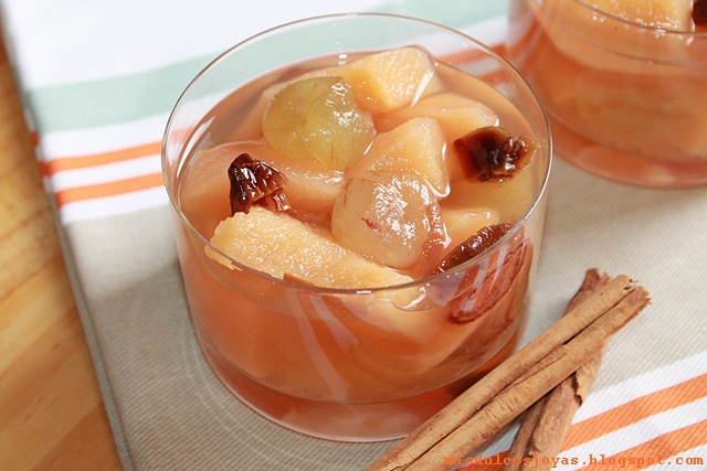 Hoy vengo con una receta sencilla, fácil de hacer y riquísima. Se trata de una compota de membrillo y uvas a la canela, enriquecida con dátiles.