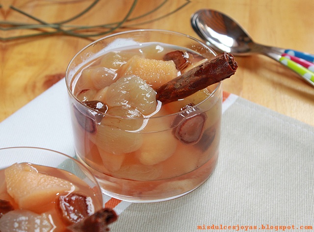 2 vasos de agua, o la suficiente para cubrir la fruta