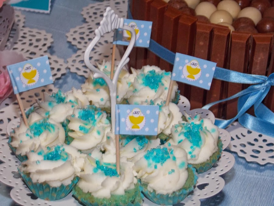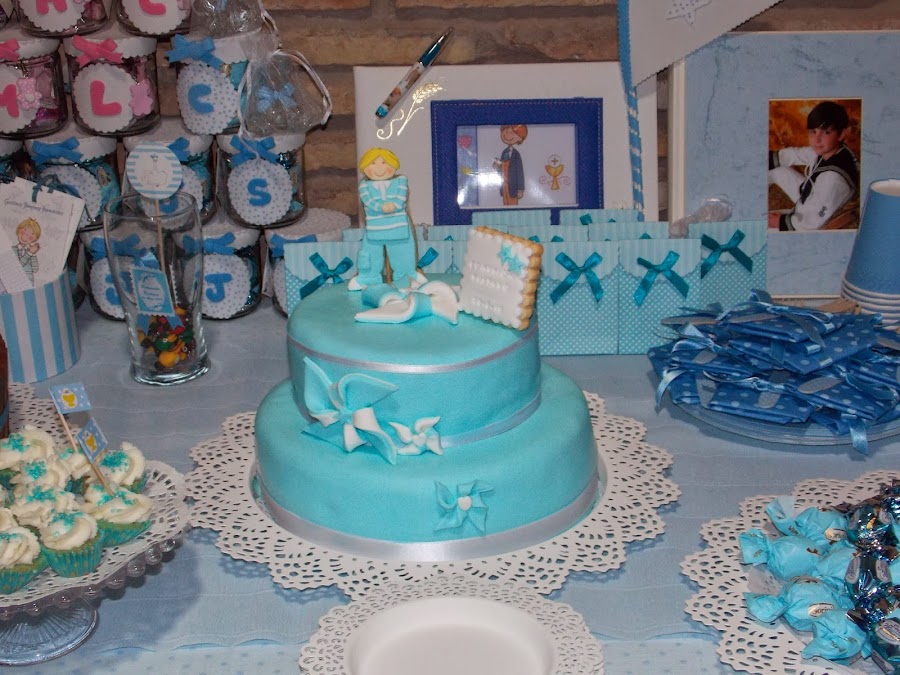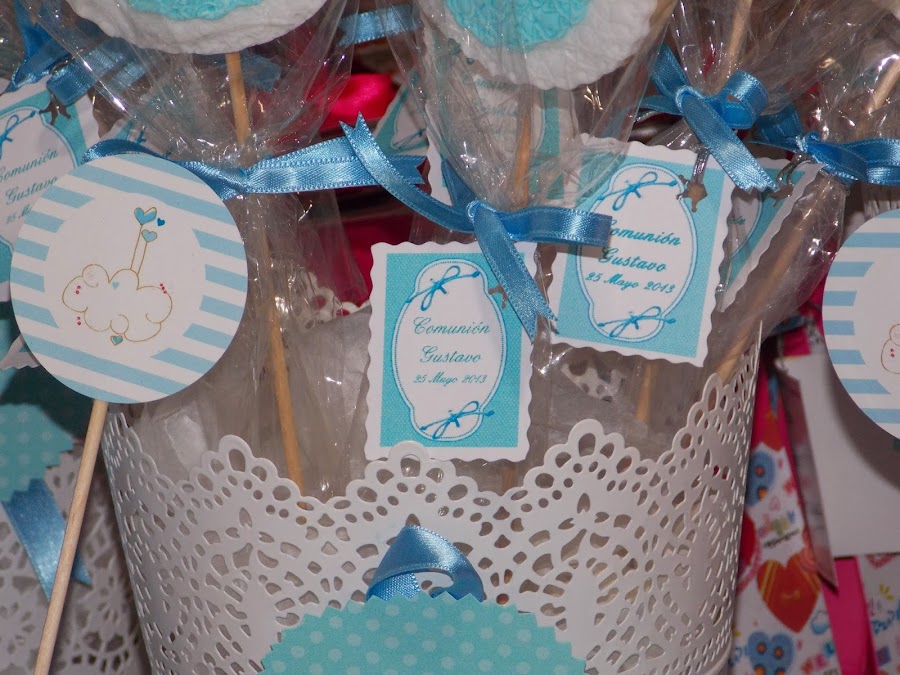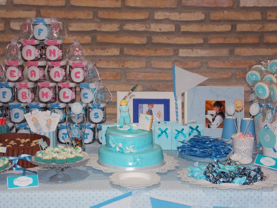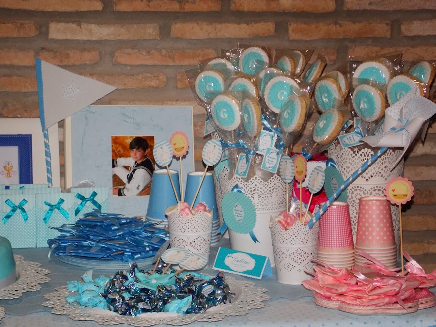 Y la comunión de Gustavo, no podíamos dejarla atrás. Gran trabajo el de su mamá Cristina, es una artesana de primera!!! La decoración que preparó una preciosidad!!! Entre las dos hicimos un trabajo precioso.