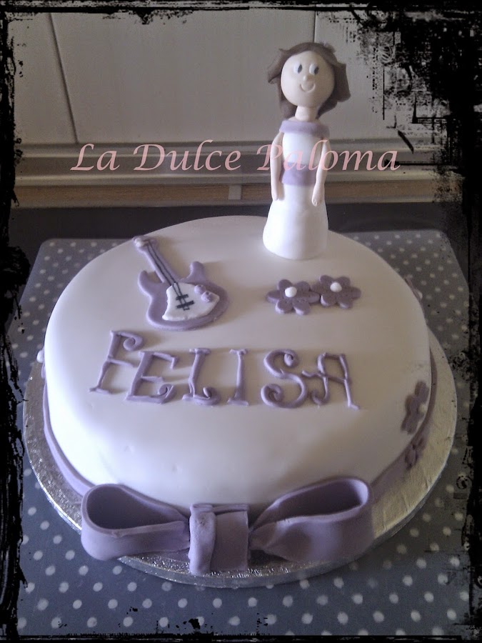 Felisa hizo la comunión en Mayo de 2014. Su mamá Natalia nos pidió la tarta para celebrar este día. Quería una tarta de comunión, pero inspirada en la serie "Violetta". Tanto Laura como yo le dimos mis vueltas a la cabeza y al final salió algo muy bonito para nosotras. Nos encantó hacer la tarta, nos encantó que la tarta fuera para Felisa y le pusimos muchísimo cariño a todo lo que hicimos. Creemos que tanto a Felisa, como a sus papás, hermano y demás familia y amigos les gustó muchísimo la tarta.