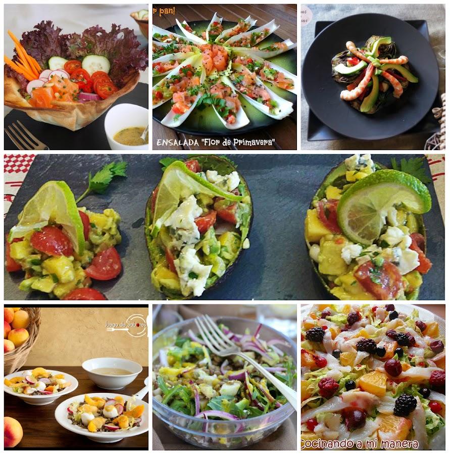 No se si os pasa pero cuando comienza el calorcito no pienso más que en comer cosas fresquitas, especialmente ensaladas. El problema es que en mi casa desde que era pequeña nos han servido la típica ensalada de lechuga iceberg,tomate y cebolla;y si la cocinera estaba de buenas un poco de atún y huevo duro,y ya te comías esa ensalada como si fuese una exquisitez. Bueno,y en casa de mis suegros ni os cuento:para ellos una ensalada es lechuga,aceite,sal y vinagre.¡Y no les pongas nada más que es una herejía.¿Vinagre balsámico?¡Aparta eso de mi Lucifer!¡Por eso hoy os traigo 7 ensaladas que son pura delicia.7 ensaladitas de esas que rompen el molde.