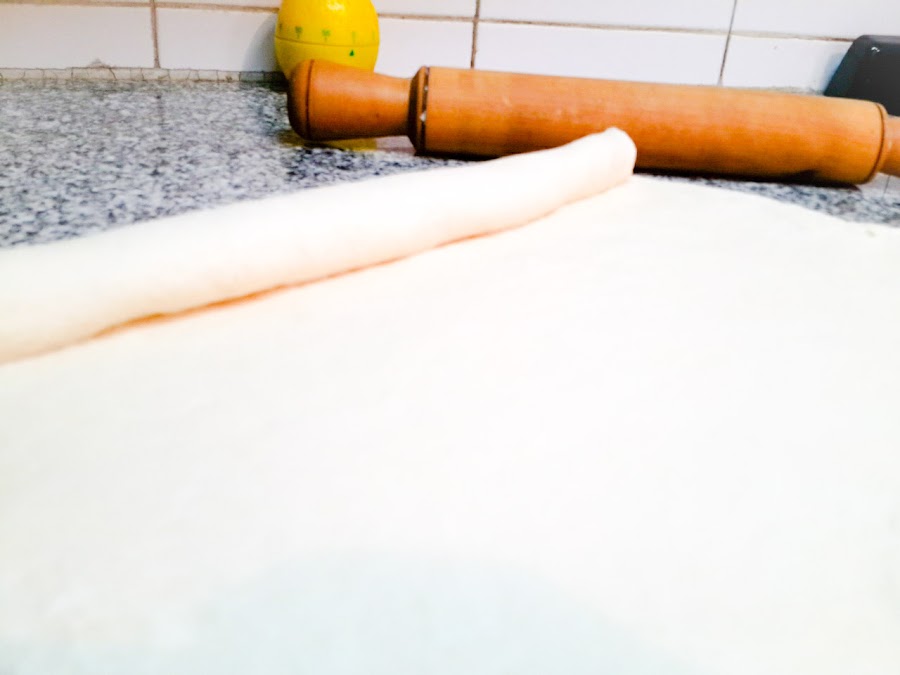 - Pasado ese tiempo, sacamos la masa, suavemente la desgasificamos y la estiras del tamaño del largo del molde, yo uso una budinera.