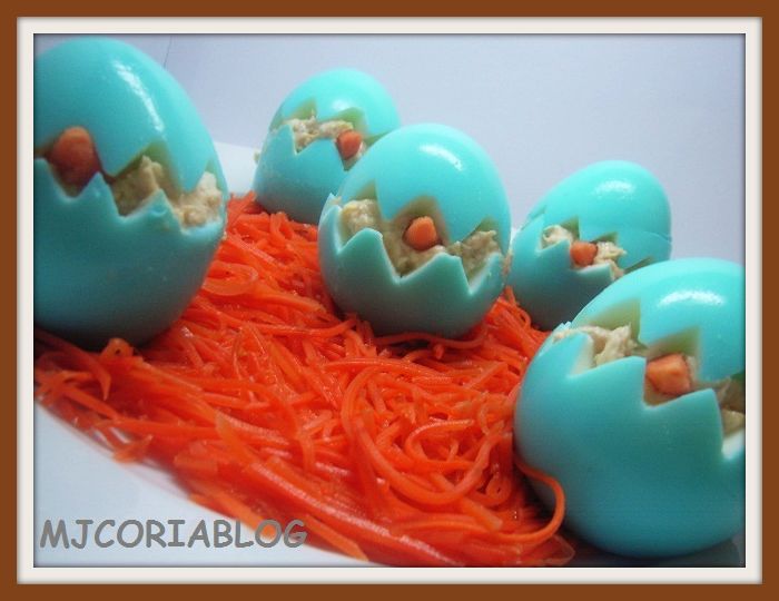 De todas las recetas que hemos seleccionado, sin duda, la más vistosa por su presentación, nos viene desde el blog de Mª José.."los pollitos invaden mi cocina"