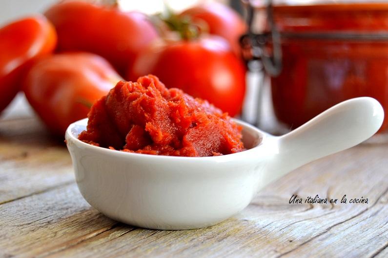 Si tienes unos buenos tomate muy maduros además de una rica salsa puedes preparar concentrado de tomate. En Italia son muchas las familias que en verano preparan concentrado de tomate para tenerlo listo en las despenas. Mi madre no suele hacerlo todos los años porque requiere un poco más de paciencia respecto a la salsa de tomate. El procedimiento inicial es el mismo pero en el caso del tomate concentrado hay que seguir cocinando la salsa hasta que adquiera la consistencia (o sea la concentración) deseada.