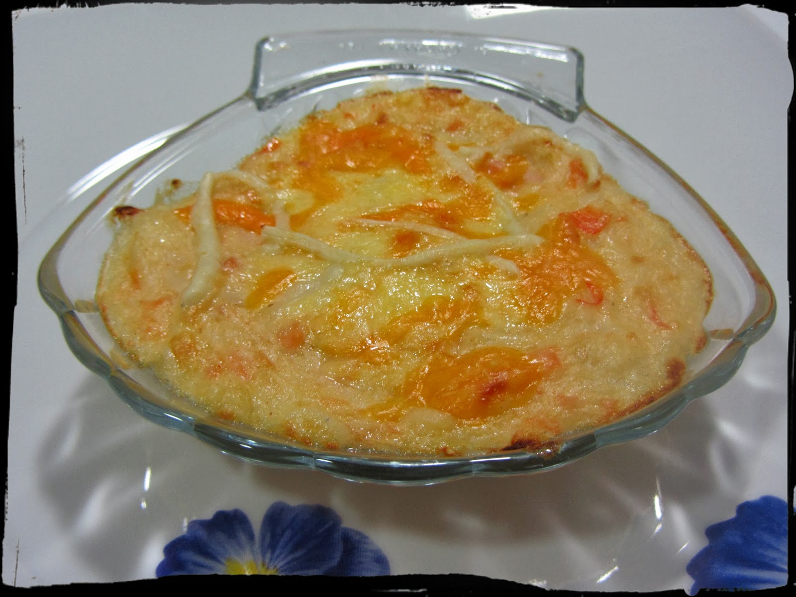 Yo lo he presentado en estas conchas de Pyrex, que tengo hace tiempo, pero quedará también bien en las tradicionales vieiras, o en ramequines o pequeñas cazuelitas refractarias.