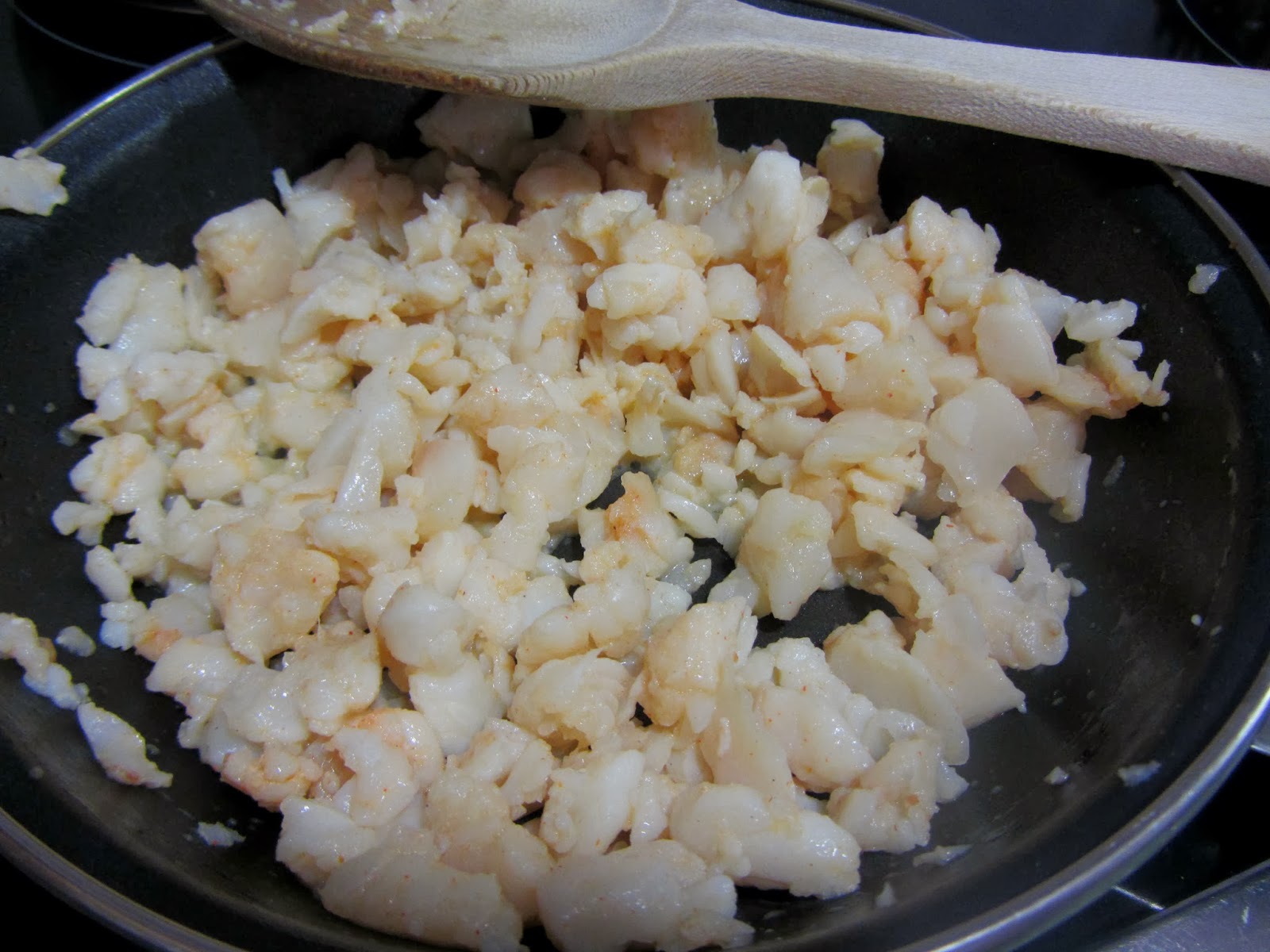 Y vamos con mi receta. Siempre me han gustado mucho las conchas de pescado y marisco, así que decidí hacer una versión que no fuera muy cara ni muy complicada de preparar, y que incluso puede prepararse con antelación y congelarse, a falta sólo del gratinado final. Cuando vayamos a utilizarlas, las sacamos del congelador con unas horas de antelación, y después, a gratinar.
