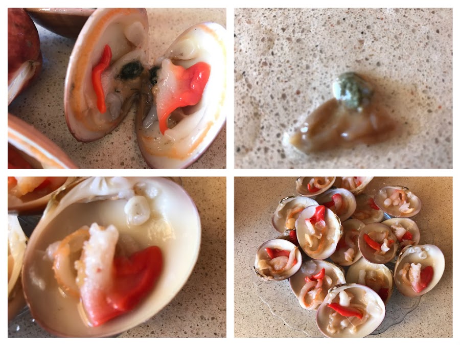 Las lavamos bien y le quitamos la bolsita de tierra que tiene y el pellejito gris. Y vamos poniendo ya limpias otra vez en su concha.
