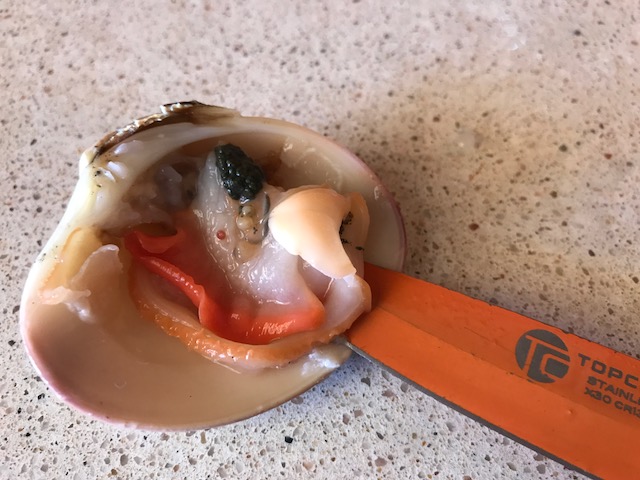 Abrimos con la ayuda de un cuchillo las conchas finas.