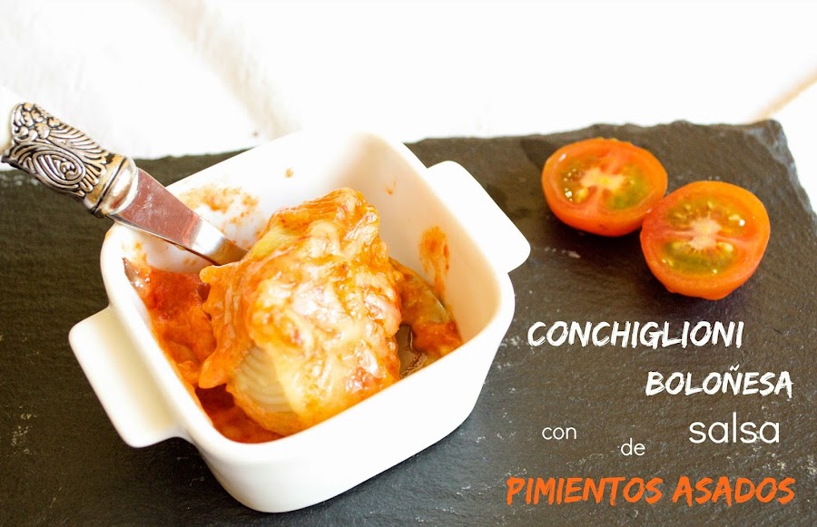 Rellenamos las conchas con la salsa boloñesa y las vamos colocando en una bandeja que pueda ir al horno.