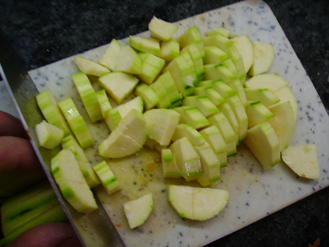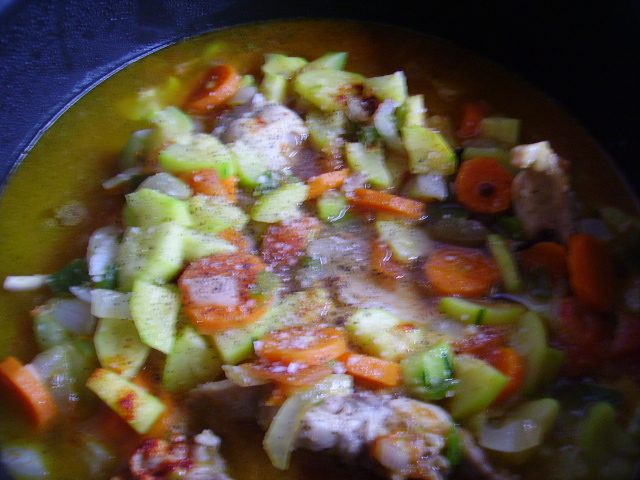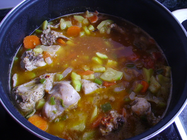 Nota: La receta original lleva también guisantes, pero me gusta mas con calabacín, ja,ja,ja. Si el conejo es de caza, deberá estar unos 40 minutos para que quede blando.