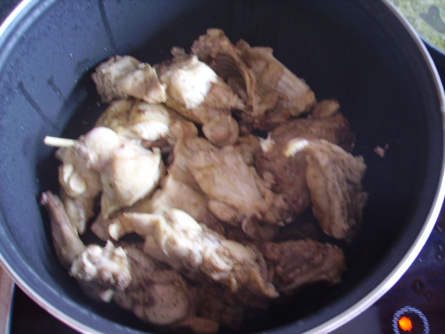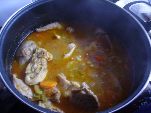 5.- Una vez lista, la añadimos al conejo en la olla.