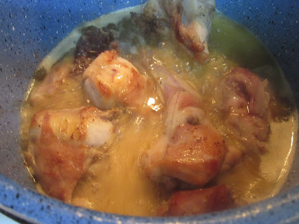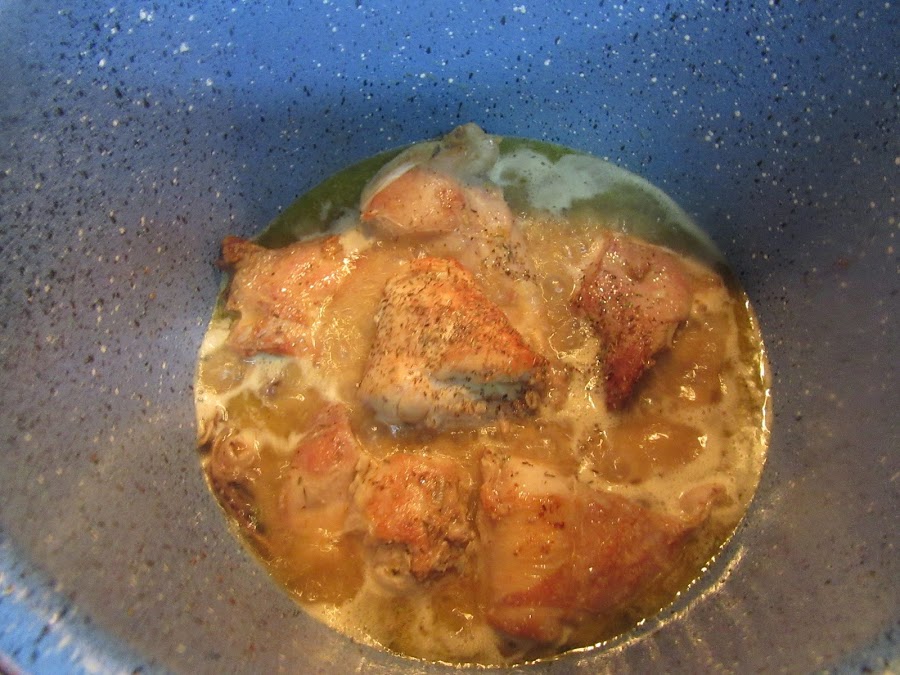 3- Agregar el caldo y tomillo, válvula cerrada, menú guiso 130º, 15 minutos, media presión.