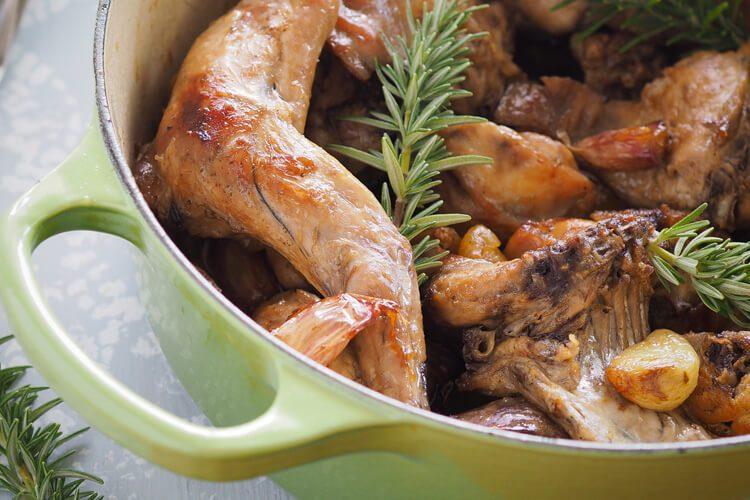 Para cocinar este conejo al ajillo, he utilizado mi cocotte baja Le Creuset. Se trata de una cocotte algo más baja y que utilizo mucho para preparar albóndigas, carnes en salsa o arroces. Si estás pensando en comprar una cocotte, ten muy en cuenta mi tienda de referencia, Claudia&Julia. Aquí te dejo el enlace a su tienda online. Tiene siempre unos descuentos muy atractivos y su servicio es excelente.