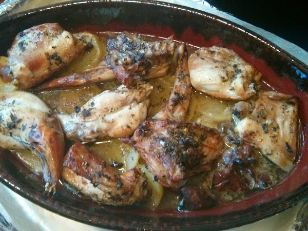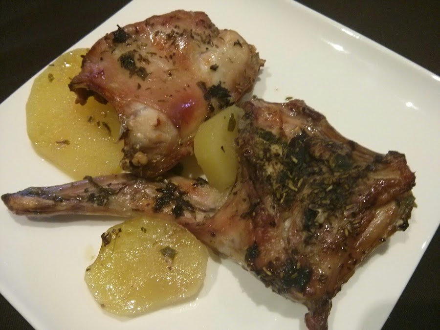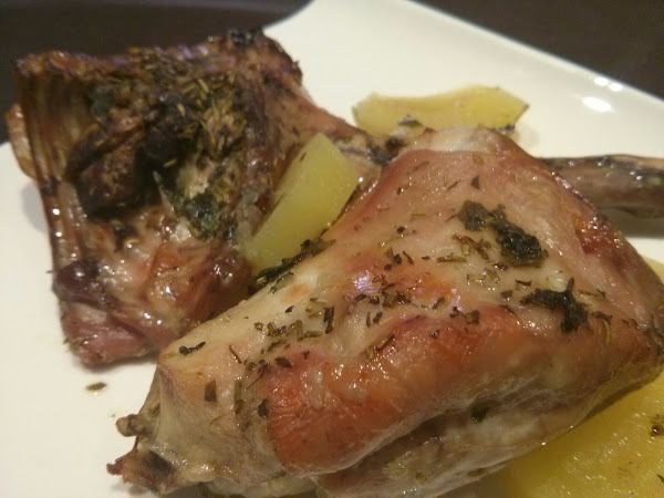 - meter en el horno 1 hora aproximadamente (dependiendo de como sean de grande los trozos) y cada 20 minutos abrir el horno para girar el conejo.
