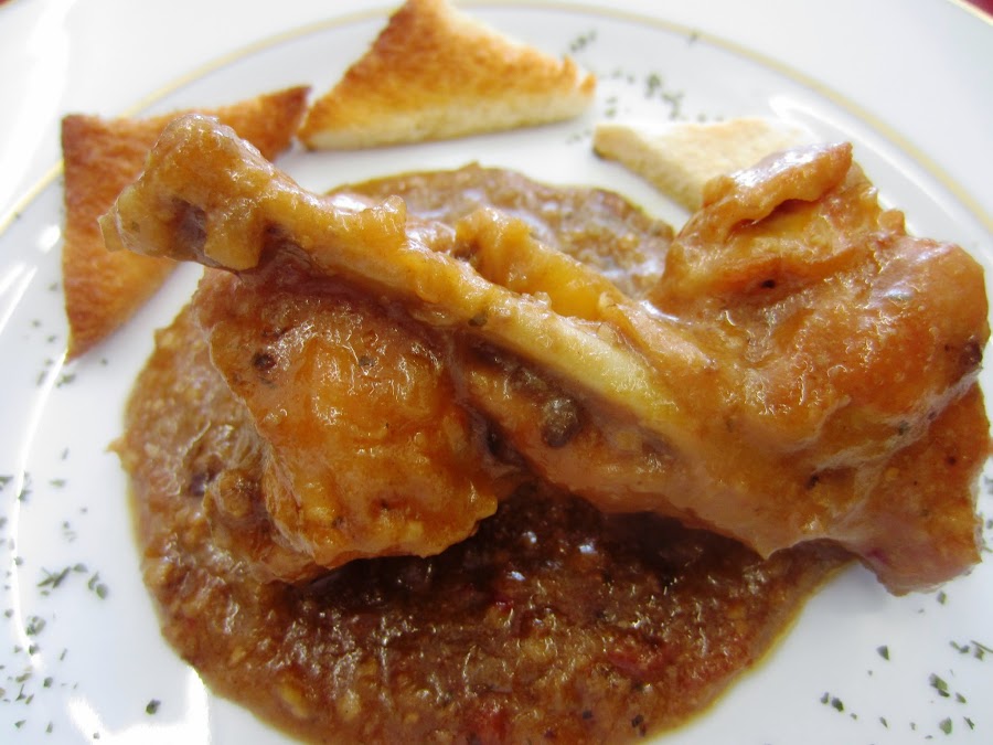 Servimos el conejo con el pan tostado y espolvoreado de perejil picado.