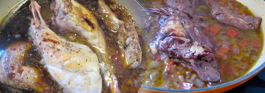 Esta receta va a tener una segunda parte. He cocinado las patas delanteras y traseras de un conejo, reservando las delanteras para acompañar una legumbre.