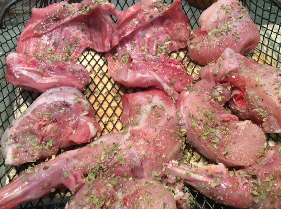 Coloca los trozos de conejo en las rejillas y programa menú pollo sin variar nada.