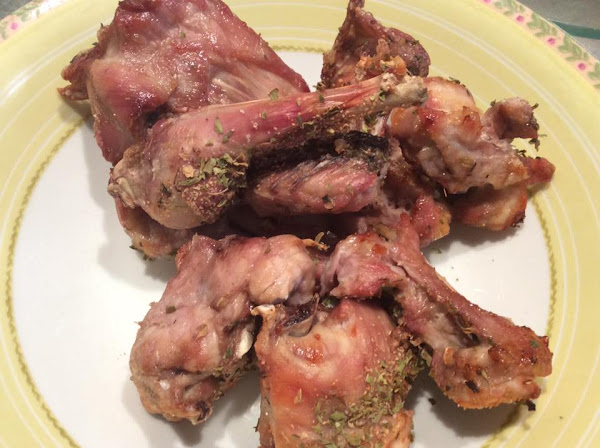 En un bol pon los trozos de conejo y añade el ajo en polvo, el orégano, la sal y un chorrito de aceite. remueve bien.