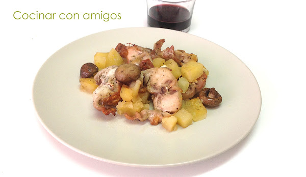 La carne de conejo es muy sana y con muy bajo valor calórico y graso, además no he utilizado el aceite para nada, así que este conejo asado con setas portobello es un plato apto para cualquier dieta.
