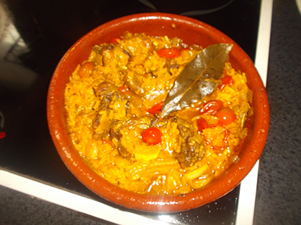 El otro día, encontré perdido en el congelador medio conejo, aunque soy adicto a la carne, he de reconocerlo, la carne que menos me gusta es justamente la de conejo, pero con dos puñaditos de arroz y unos cherrys quedó muy rico.