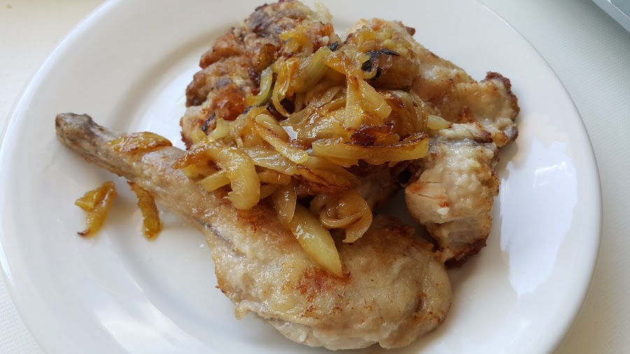 Y así nos queda nuestro plato de conejo con cebolla.