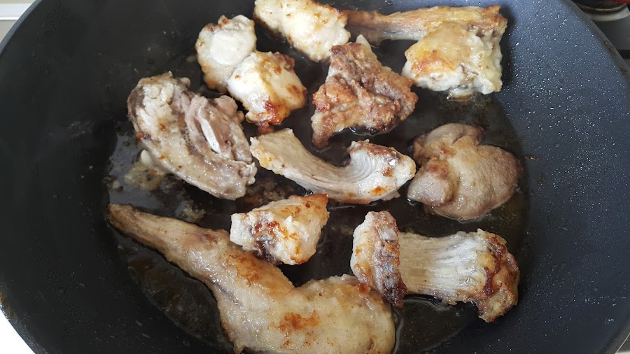 Cuando la cebolla tenga este aspecto, la añadimos al conejo y ya lo tendríamos listo.