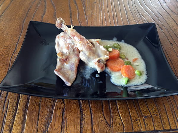 Cuando el conejo esté frito por ambos lados, subimos el fuego y echamos un chorro de vino blanco.