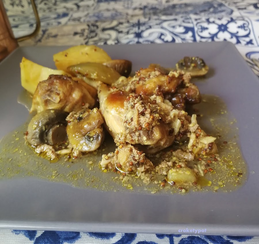 La receta que hemos preparado lleva mostaza antigua, que potencia el sabor de la carne y hace que un plato con pocos ingredientes, resulte de lo más sabroso, cocinado en la olla lenta junto a las patatas, nos traslada a los guisos de antes.
