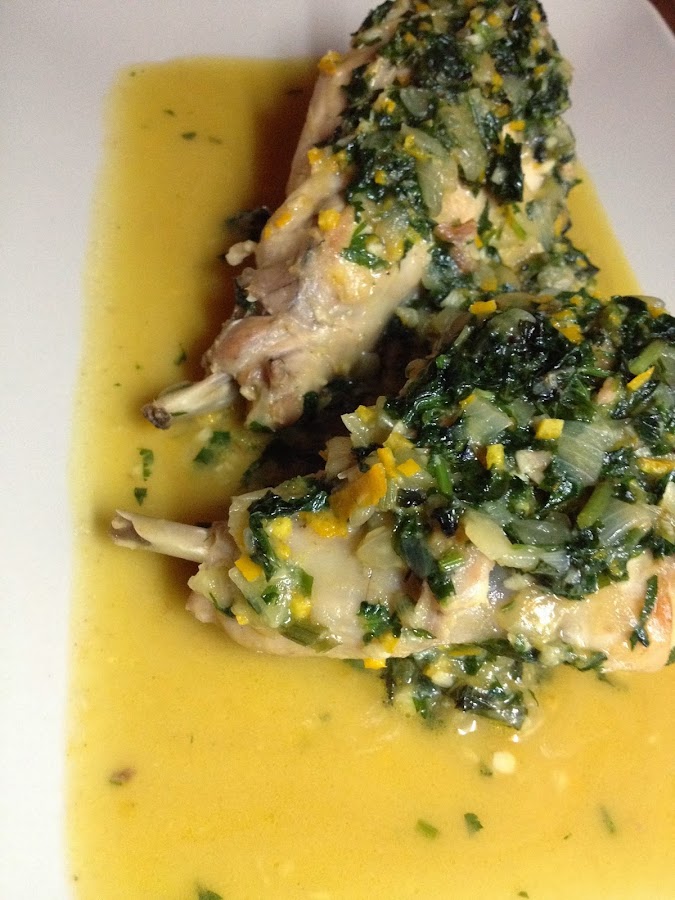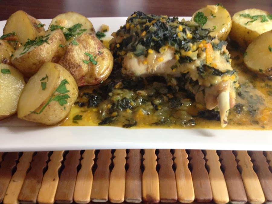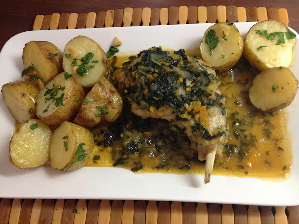 3.- Añadimos el zumo de naranja y subimos el fuego, hervimos hasta que este reducida o espese. Introducimos las hierbas aromáticas y dejamos que se cocine 5 minutos más. Servimos con una guarnición de papas, arroz o cuscús.