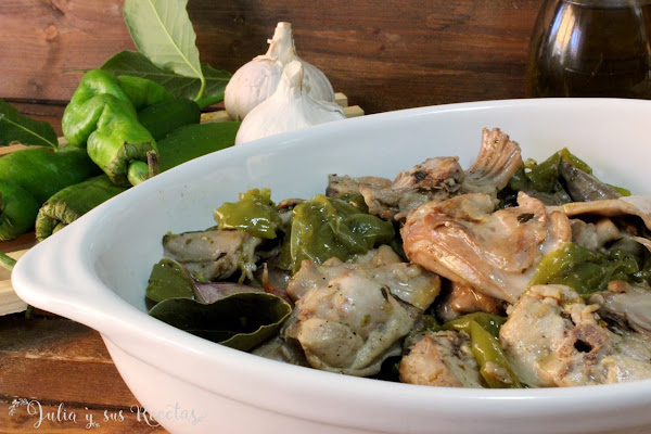 El conejo con pimientos verdes es una receta sencilla, que se hace en poco tiempo, pero con un resultado riquísimo.