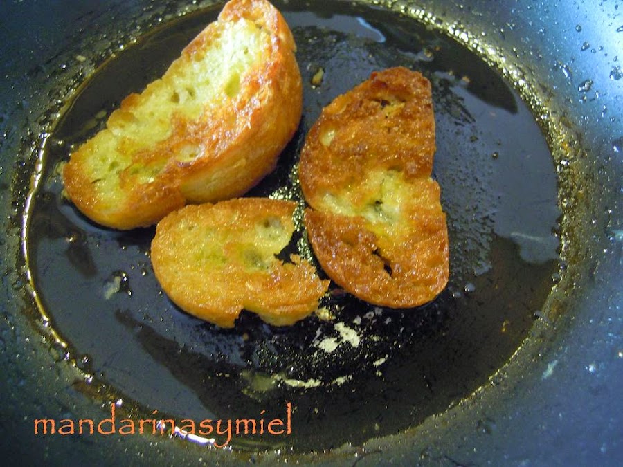 En una sartén fríe dos rebanadas de pan, deja enfriar y junto al hígado y los ajos, pícalo todo junto en un mortero.