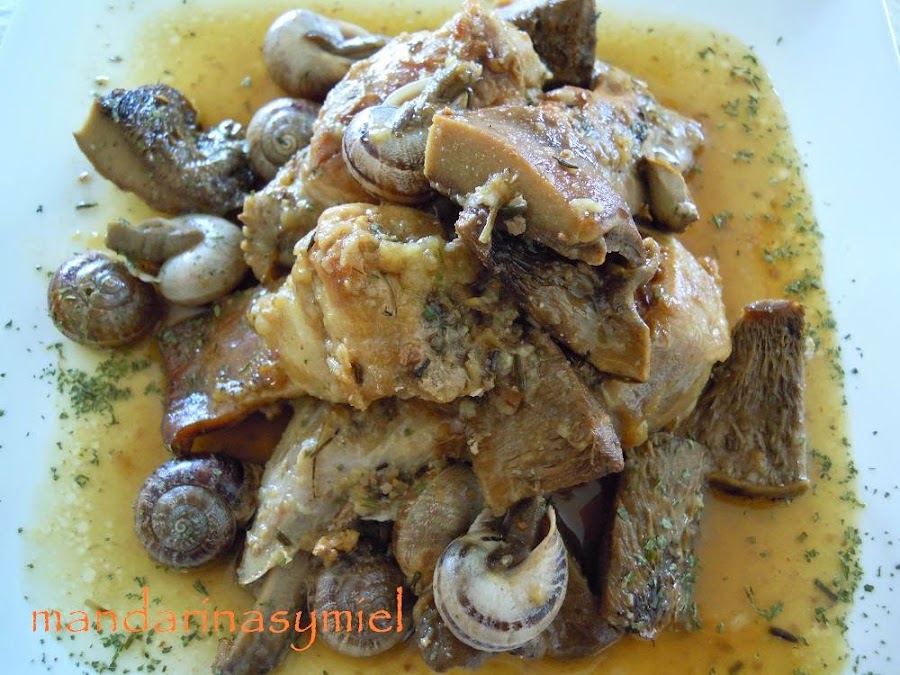 Es muy tradicional en estas fechas preparar conejo con robellones y caracoles, es un plato suculento y delicioso.