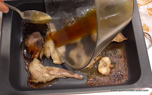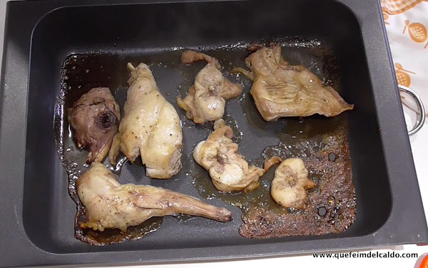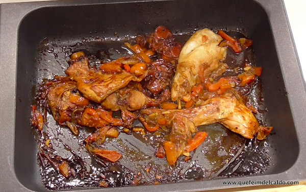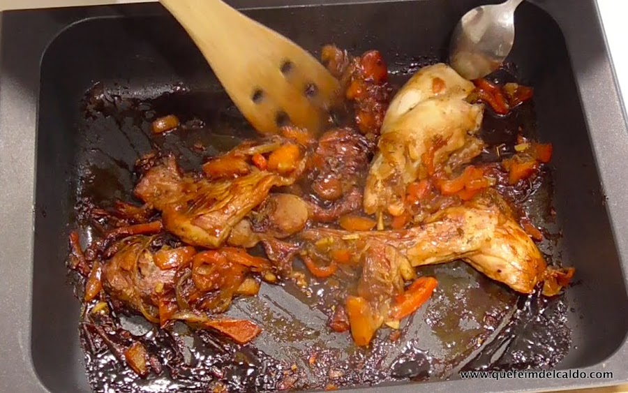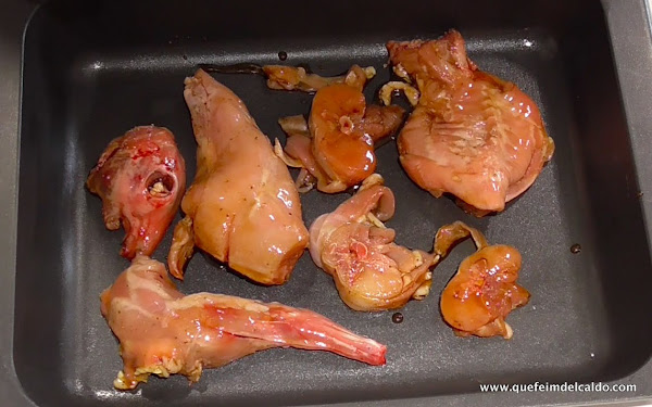 Pasados los 10 minutos colocamos el conejo en la fuente de horno.