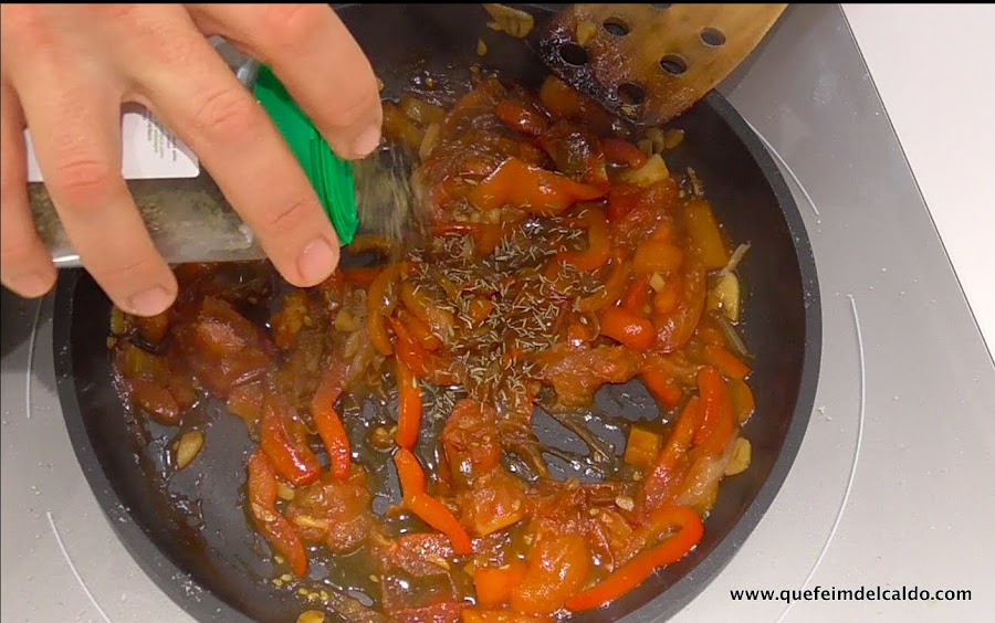 Una vez reducido ponemos un poco de tomillo y dejamos 1 minuto más.