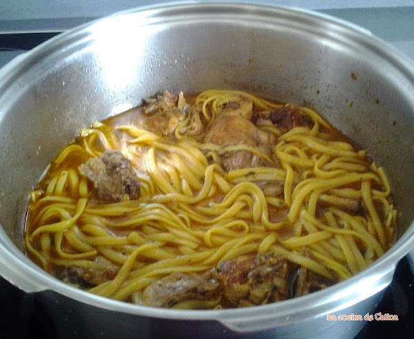 Removemos para que se mezcle todo bien y se cuece durante el tiempo que especifica el envase de los tallarines, (de 6 a 8 minutos).