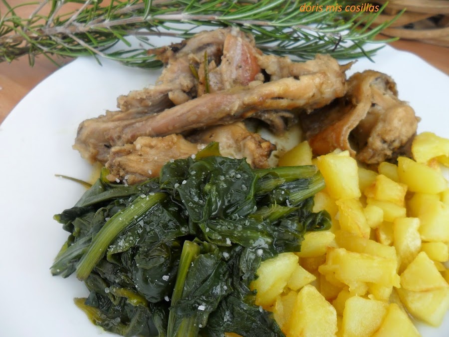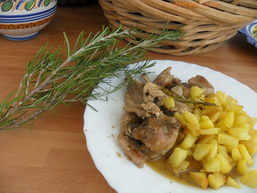 En una sartén ir friendo los trozos de conejo en tandas y reservamos en un plato.
