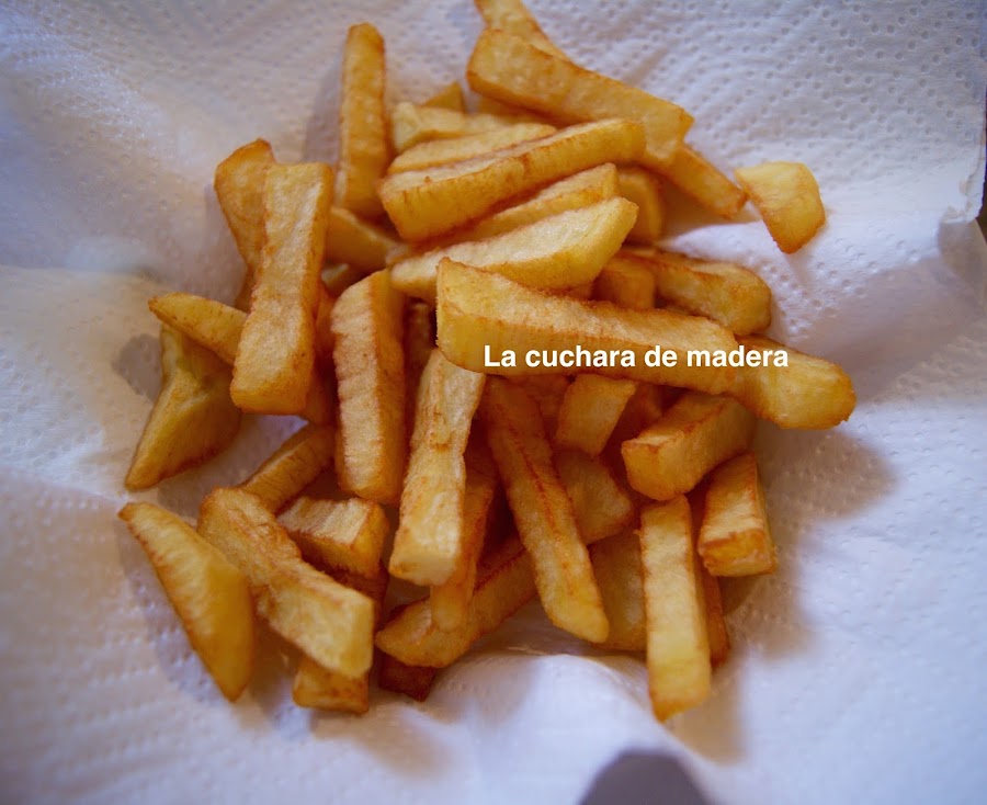 Preparamos unas papas fritas, o bien unas papas hervidas ó arrugadas y ya a empatar.