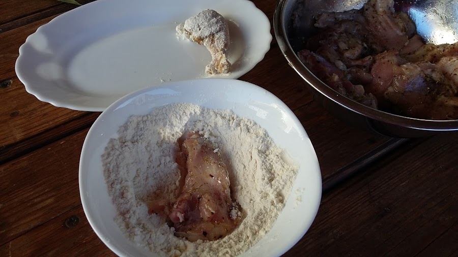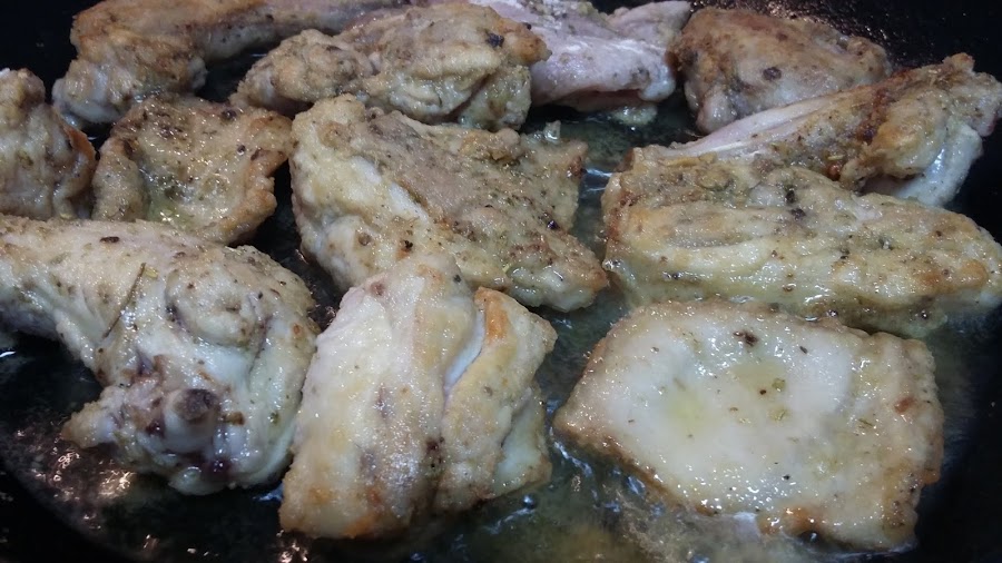 5- Enharinamos el conejo y freímos con aceite de oliva. Cuando estén dorados los retiramos y reservamos.
