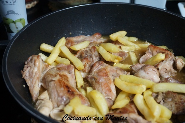 Freímos unas patata para acompañar, las añadimos en el último momento para que coja todo el sabor de la salsa.