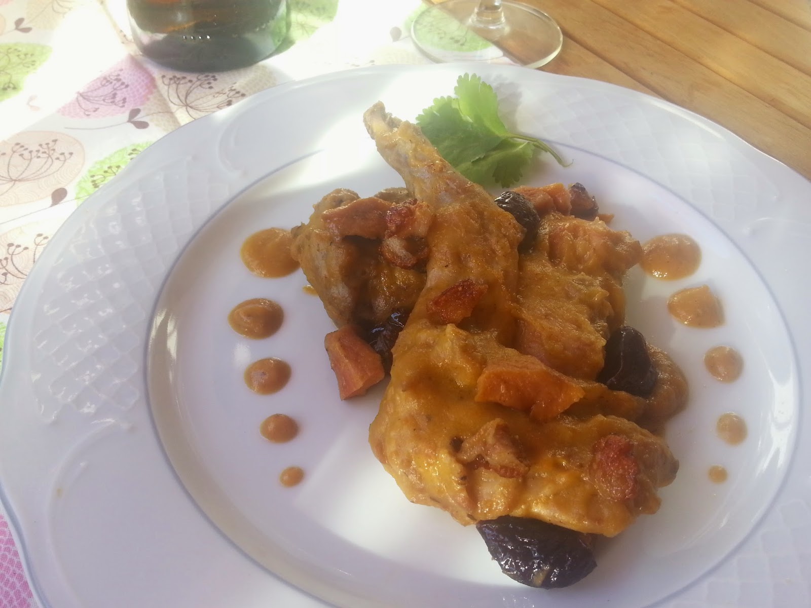 Me gustan las recetas de contrastes y esta los tiene, el vino de jerez, las ciruelas y orejones dan un toque especial al conejo que es el protagonista de esta receta.