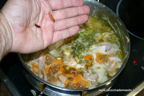 Junto con las 3 cayenas( al hacer la foto se me cayó una jijiji pero si miráis el caldo ahí esta jajaja)