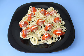 Los tomates los pelaremos y los picaremos en gajos, reservamos.