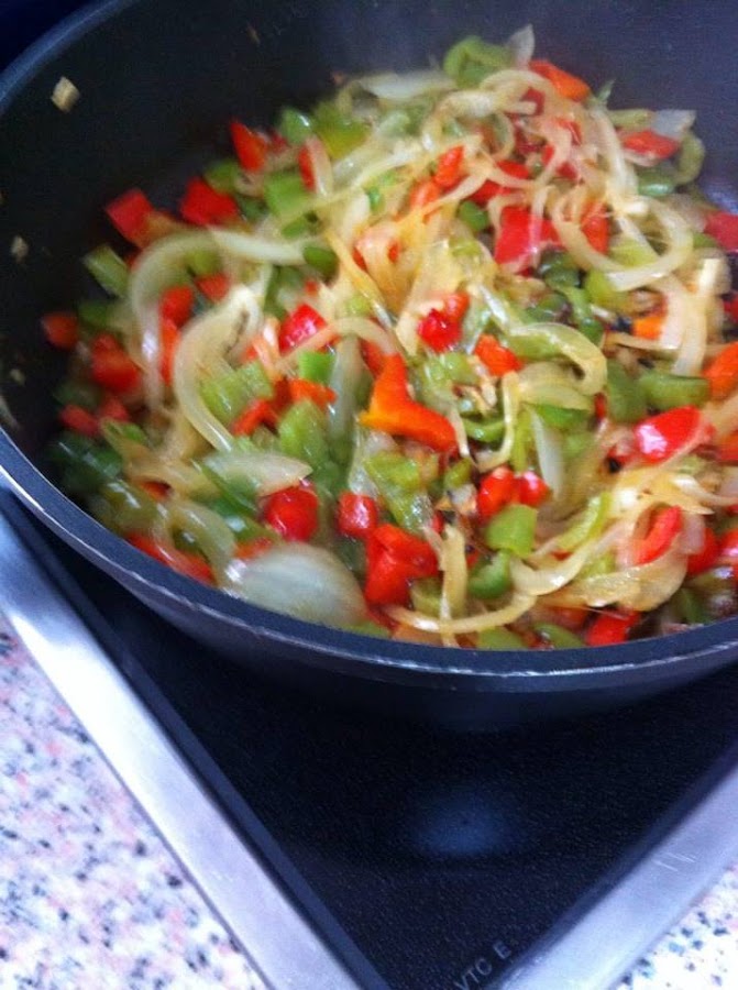 * En una sarten amplia calentamos el aceite y pochamos bien la verdura en juliana o trozos grandes hasta que este oscurita y la pasamos a una cazuela u olla