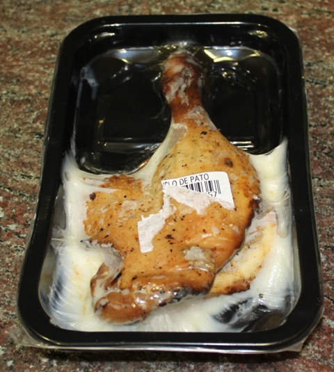Para preparar el pato únicamente lo ponemos en la bandeja de horno (con su grasa) y lo tendremos unos 5 minutos a 180º arriba y abajo con ventilador o hasta que veamos que está doradito.