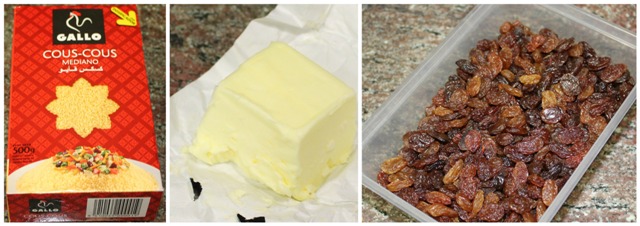 Para hacer el cous-cous ponemos en una olla la misma cantidad de agua que de cous-cous le vayamos a poner. Le añadimos un chorrito de aceite y sal al gusto. Lo ponemos al fuego alto hasta que empiece a hervir, cuando rompa el hervor lo retiramos del fuego e inmediatamente le añadimos el cous-cous. Lo dejamos reposar unos 5 minutos.