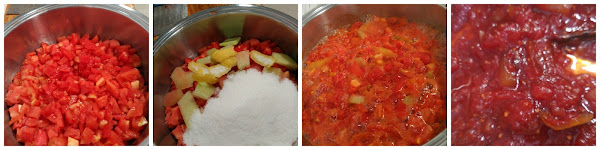 Para la mi la receta de hoy tiene un valor sentimental ,recuerdo de pequeña ver a mi abuela prepararla en casa todos los veranos en grandes cantidades,nada de dos botecitos de confitura.Entonces me molesta el olor que desprendía la confitura y me parecía muy curiosos utilizar los tomates para hacer una confitura.